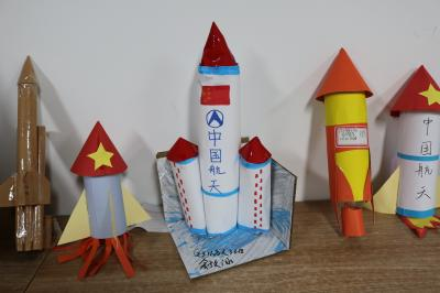 活动期间,同学们发散思维,奇思妙想,充分发挥动手能力。他们用纸板做成了中国航空航天发射器、火箭、导弹等的形状;精巧的手工剪纸,剪出了“两弹一星功勋奖章”的获得者钱学森的轮廓;竹编上书写出蓬勃向上的精神风貌;一幅紧扣主题,色彩斑斓的绘画作品充分展示了热爱祖国,无私奉献,自力更生,艰苦奋斗,大力协同,勇于登攀的“两弹一星”精神。