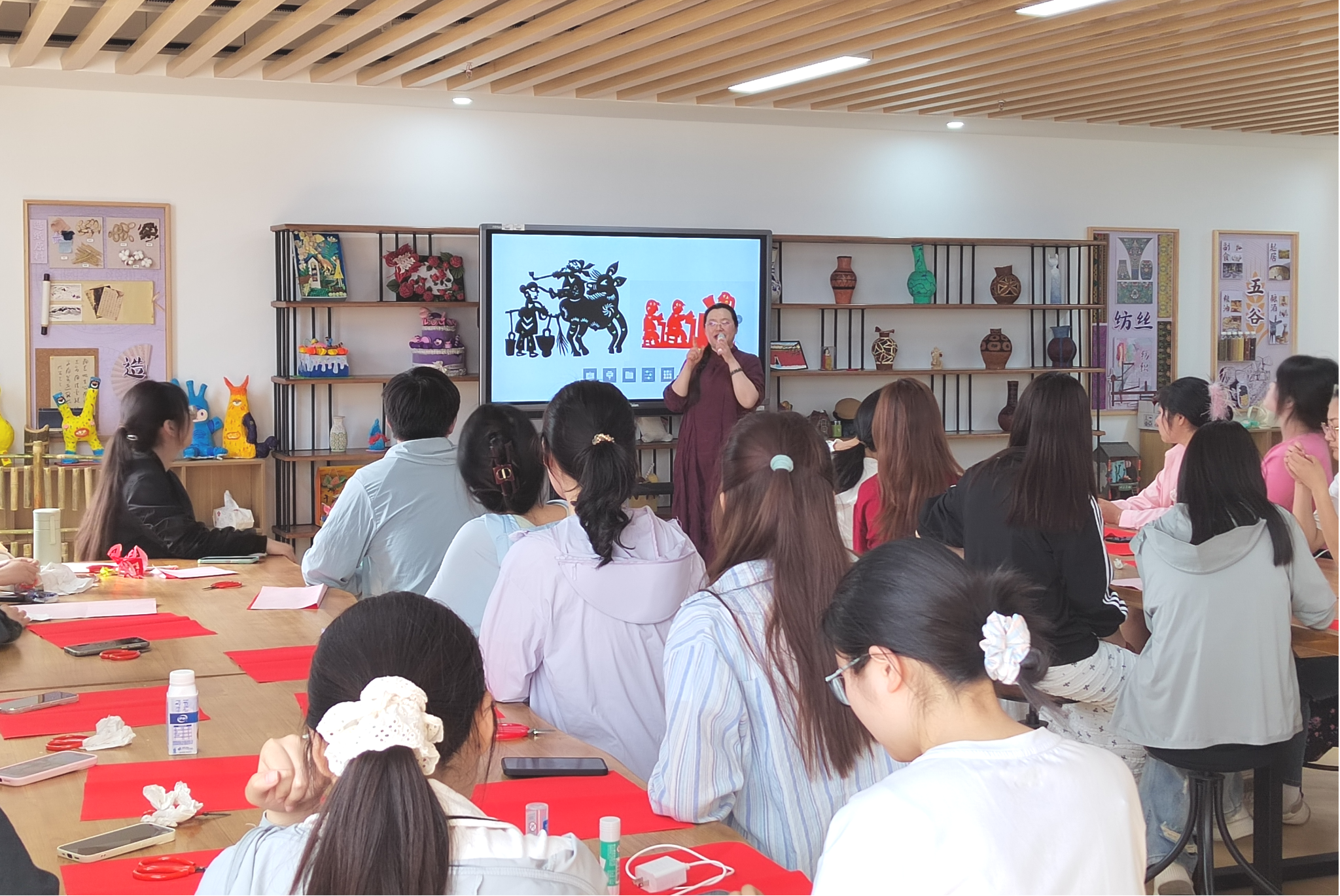 4月18日,我院“心知会”心理健康辅导站特邀省级非物质文化遗产代表性传承人、阜阳市南京路第二小学副校长张艳老师,在西湖三区Z楼810实训室为学院学生带来一场别开生面的“剪纸艺术疗愈”活动。活动将传统非遗技艺与心理健康教育巧妙融合,让学生在指尖艺术中感受文化魅力、释放心灵压力,探索出“以美润心、以文化人”的心理育人新路径。