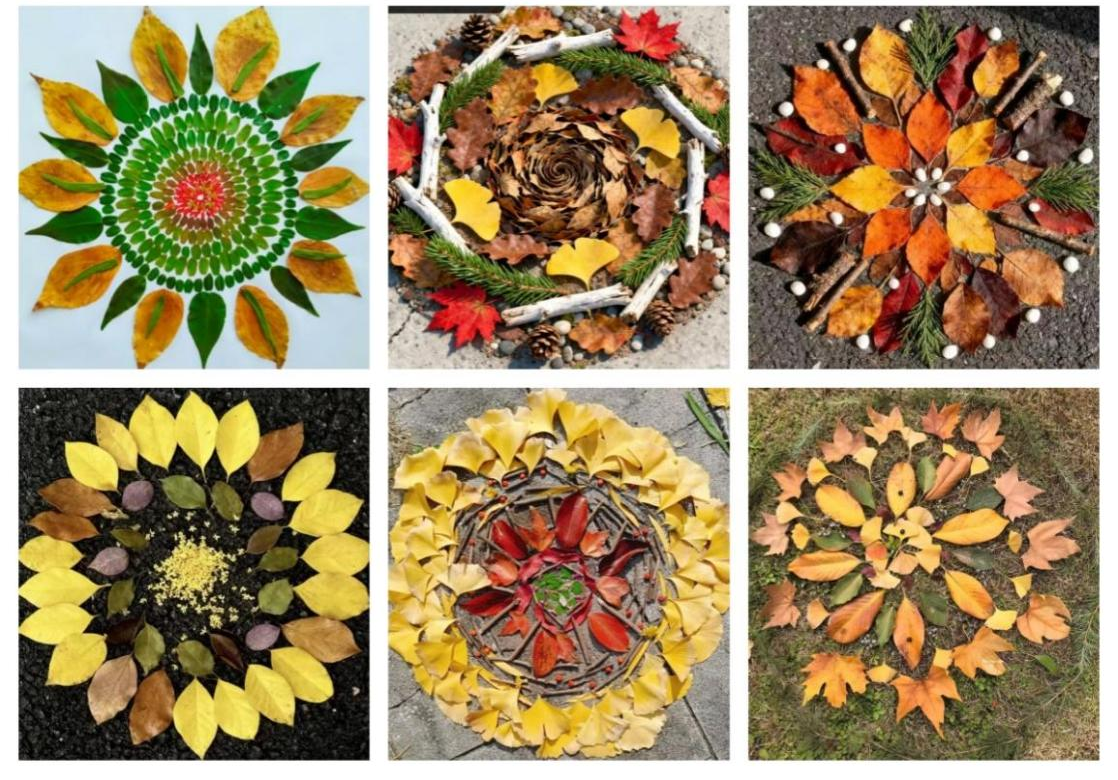 本次活动以自然疗愈为核心,引导学生走出室内、亲近自然,自主收集落叶、树枝、花瓣等天然材料。在舒适静谧的创作环境中,同学们将自然元素巧妙排列组合,构建出独具个性的圆形曼陀罗图案,在动手实践中梳理内心思绪,完成与自我、自然的深度对话。活动过程中,同学们通过触摸自然纹理、搭配色彩形态,沉浸式感受四季更迭的细节与生命的本真力量,在慢节奏的创作中释放学业与人际交往中的焦虑情绪。