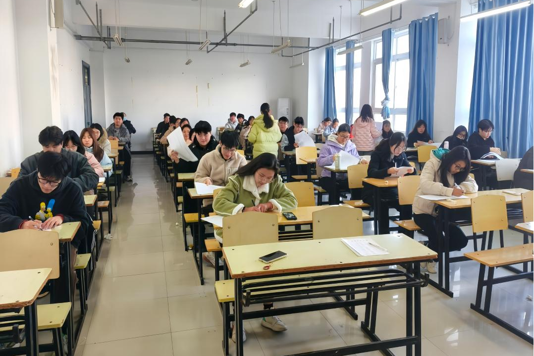 竞赛设初试、复试两个环节。初试现场,参赛同学提前签到,工作人员宣读纪律后,笔试正式开始,选手们恪守规则、专注作答,结束后有序交卷,评委组随后完成阅卷并确定复试名单。复试阶段,选手提前入场,主持人明确抢答规则后,竞逐拉开帷幕。同学们反应迅速、踊跃答题,同步抢答时相互谦让,氛围热烈和谐,计分人员精准记录,统分组严谨核算最终成绩,确定获奖名次。