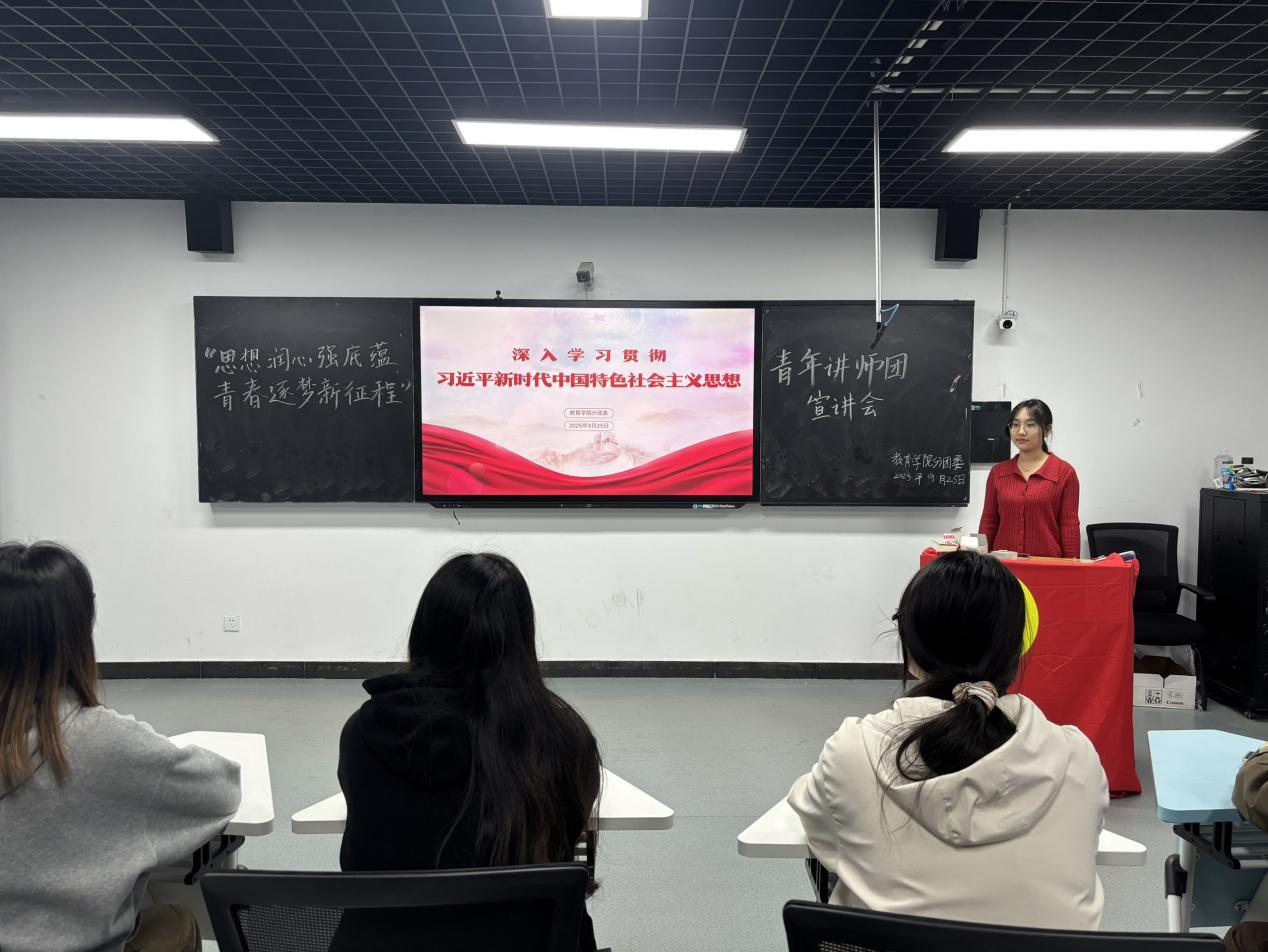 为深入学习贯彻习近平文化思想,引导广大青年学子坚定文化自信、勇担文化使命,我院分团委于9月25日上午在三里桥校区Z楼308教室开展“领悟文化思想,铸就青春梦想”为主题的青年讲师团宣讲会。本次宣讲由学院分团委兼职副书记余孜涵主讲,共有30余名团干参会。
