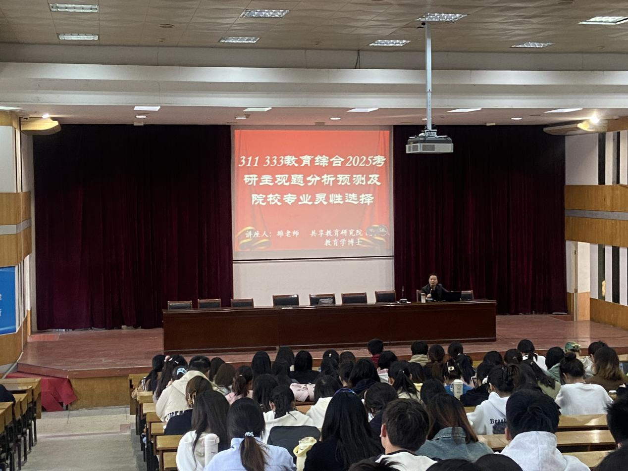 雒强老师首先对今年教育学学科硕士研究招考的整体形势进行了详细解读。他用数据展示了近几年考研人数的变化趋势、不同专业的报考热度以及录取比例等关键信息,让同学们对研究生报考有了更加清晰的认识。同时,雒老师还针对当前的教育政策变化,分析了这些变化对报考硕士研究生的学子产生的影响,提醒大家要时刻关注政策动态,做好应对准备。对于考研复习的规划,雒老师更是倾囊相授。他将整个考研复习过程划分为基础、强化和冲刺三个阶段,并针对每个阶段的特点和重点,为同学们提供了详细的复习建议。在选择院校和专业方面,他提醒同学们要结合自身的兴趣、实力和职业规划来进行选择,不能盲目跟风。建议大家通过查询院校官网、咨询学长学姐、参加招生宣讲会等方式来了解院校和专业的相关信息,从而做出更加明智的选择。