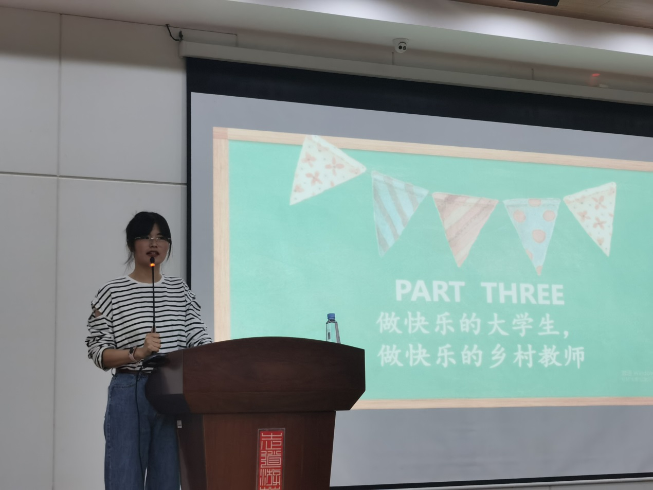 刘祥云结合个人大学学习生活及工作经历,分享了作为大学生应着重关注的专业课的学习、专业技能的提升、教学基本功训练,做好心理建设等,以及从教单位校园环境、教学设施、学生风貌变化叙述了乡村教育的进化之路。随后,她就如何做快乐大学生,如何做快乐乡村教师为学生提出了宝贵建议。