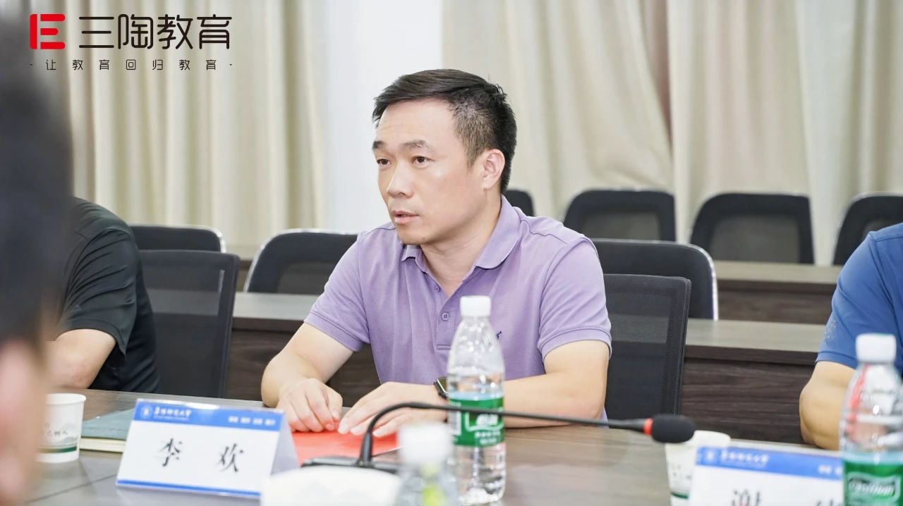 随后,三陶教育CEO尹留勇介绍了三陶教育此行目的。他谈到,三陶教育一直致力于让优质教育资源触达更广阔的群体,全国3000余家自习室不仅是教育资源的承载体,更是高校学子将理论转化为实践的舞台。“我们希望与阜师大一道,探索一条‘懂教育、通技术’的复合型人才培养之路,让更多学生既能扎根教育本质,又能把握时代传播的脉搏。”