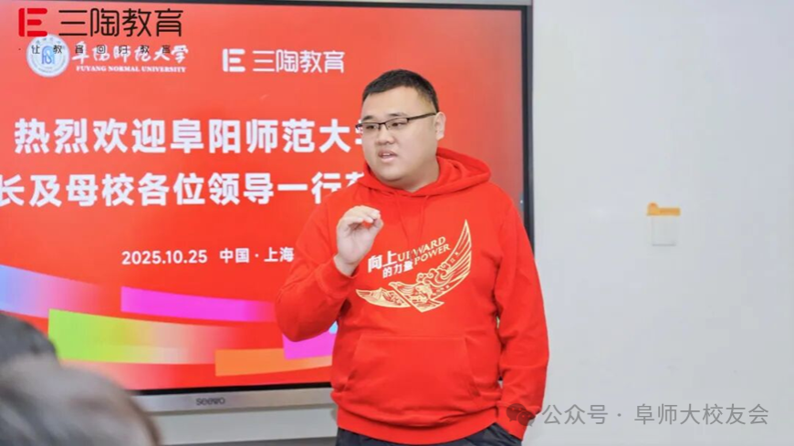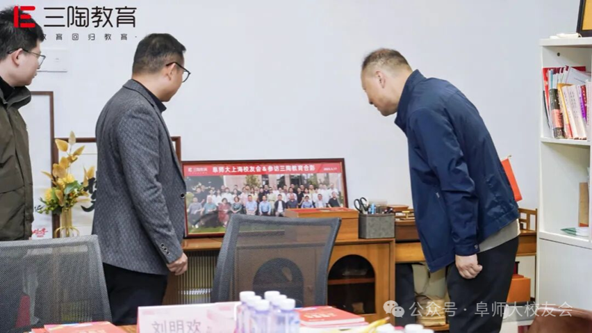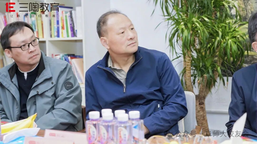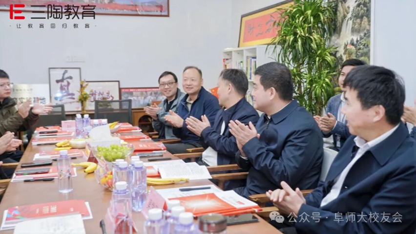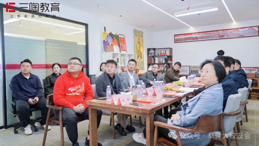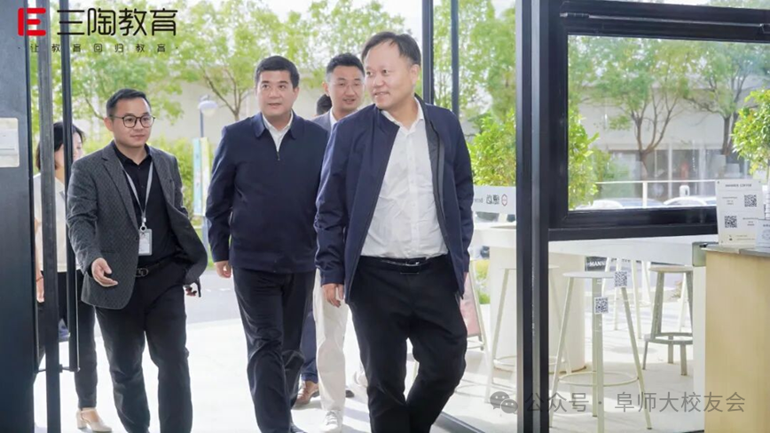 10月25日,阜阳师范大学党委副书记、校长方廷勇携校党委常委、副校长窦贤琨,校友办主任李国强,数学与统计学院党委书记吴学军,教育学院党委书记李静,生物与食品工程学院党委副书记韩天鹏,教育学院校友联络人刘明欢等校领导团队,与阜阳师范大学合肥校友会理事长胡赟、副理事长张勇、秘书长孙韬一同,莅临三陶教育总部开展深度交流。
