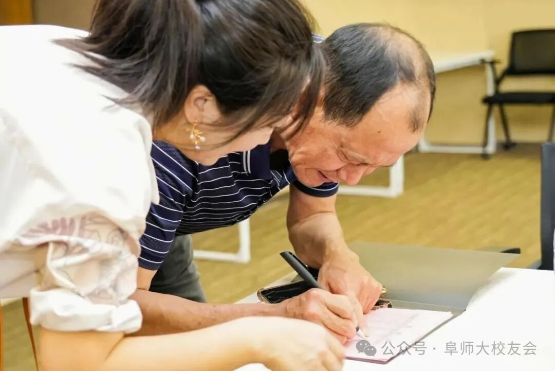 活动伊始,校友们陆续抵达签到,现场播放着阜阳师范大学的校园纪录片,熟悉的教学楼、操场、图书馆画面瞬间唤醒青春记忆。三陶教育精心准备了校友纪念手册,内附母校老照片、校友通讯录及活动议程,细节之处尽显温情。签到区设置的 “时光留言板” 上,校友们纷纷写下对母校的祝福:“一朝师大人,终身母校情”“愿教育之光普照四方”…… 字里行间满是对母校的眷恋与对教育事业的热忱。