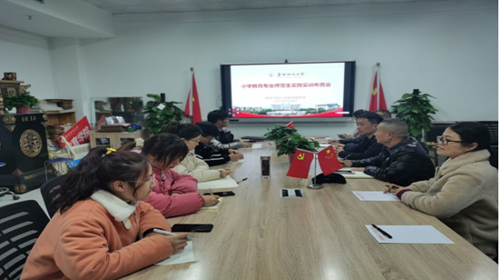 为提高小教专业师范生教育实践能力,迎接2021年度全省高等学校师范生教学技能大赛,教育学院于2021年3月8日晚在西湖校区景行楼802会议室举行了小学教育专业师范生实践实训布置会,教育学院小学教育教研室全体教学法课任教师及全院小教专业非毕业班班干出席会议,教育学院院长李欢到会指导。