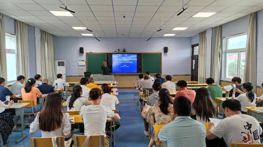 7月4日上午,方家峰教授以“科学思维与文章写作”之间的关系为切入点,就如何撰写高质量论文进行讲授,重点讲述了论文选题、内容结构、文章撰写等,他强调,问题是论文的灵魂和存在的理由,论文写作贵在养成问题意识,学会辨明真问题和假问题、工作问题和学术问题。他选取“双减”“应试教育”“道德教育”等教育热点话题,并以《安徽基础教育》杂志收到的投稿为例,正反结合,向大家讲授了论文写作如何提出问题、分析问题、解决问题,以及如何提炼关键词、论文摘要,他还列举了论文写作过程中最易犯错的几种问题,并就如何避免,结合事例进行了讲解。