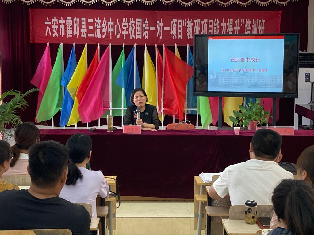 7月8日上午,在霍邱县三流中心校学术报告厅,阜阳师范大学附属中学特高级教师高家芳校长主讲了“在反思中成长”学术报告。她通过自己的亲身体验,结合自己的深入思考,根据自己的观察,声情并茂,理论与实践并重,详细阐述了反思的重要意义,重点论述了反思的具体方法和要求,深入分析了如何在反思中搞好教学、科研。