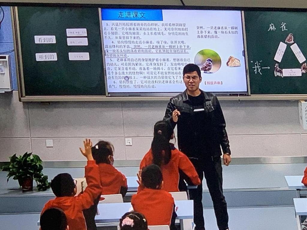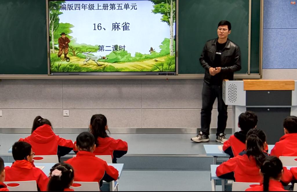 11月10日上午第二节课,六安市将军路小学教师赵治杰执教《麻雀》。该课时是第五单元的第一篇课文,本单元又是习作单元。他围绕单元要素:了解作者是怎么把事情写清楚的。写一件事,把事情写清楚。新课标要求四年级的孩子写做达到:1. 学习观察生活,学习选择材料,学习清楚明白地写出自己的所见所闻,表达自己的真情实感,如实表达;对于想象的习作,大胆想象。
