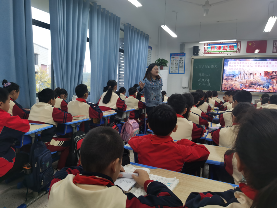 11月10日上午第一节课,六安市将军路小教师黄健文执教五年级的《圆明园的毁灭》一课,阜阳市语文名师崔标听课并指导。《圆明园的毁灭》一文是部编本语文五年级上册第14课内容,本单元内容以“爱国情怀”为主题。作为精读课文,该课设计为两课时,本次授课内容为第二课时。他首先以圆明园毁灭前的视频导入,激发学生的学习兴趣,结合圆明园毁灭后的图片进行对比感受,从而引入本课的的学习。崔标在授课过程中运用大量图片并结合视频的形式,拉进学生与文本的距离,感染学生的情趣,增强学生的参与意识,为本课奠定了情感基调。教学设计以生为本,让学生在思考中自然地走入文本。崔标建议,要根据教学实际情况,围绕特定学习主题,设计了系列学习任务,采用多种手段,引导学生自主理清课文脉络,学习语文要素(本单元的语文要素是结合资料,体会课文表达的思想感情),丰富语言积累,从而实现语文课程工具性和人文性的统一。他指出,本课在完成基础型学习任务群的基础上,侧重于发展型学习任务群,例如拓展学生的想象空间,让学生以语言运用为基础,在个体语言经验发展的过程中提升思维能力、审美创造、文化自信,有效的落实了新课标的理念。