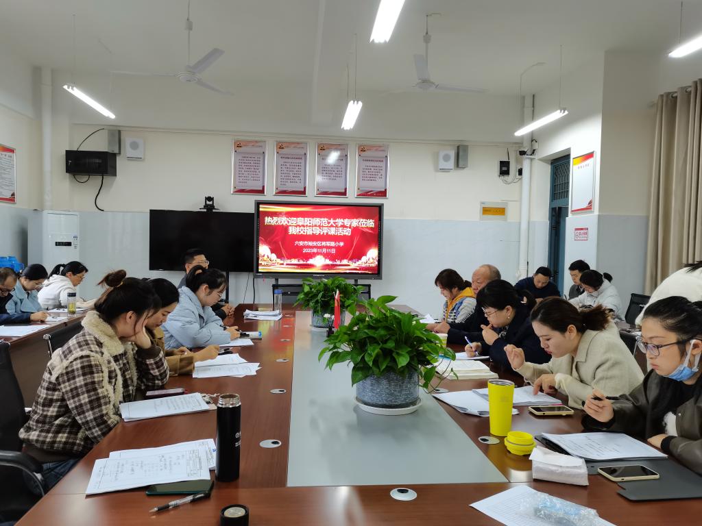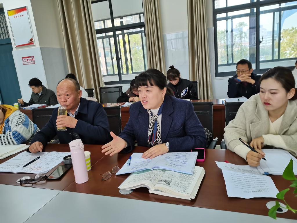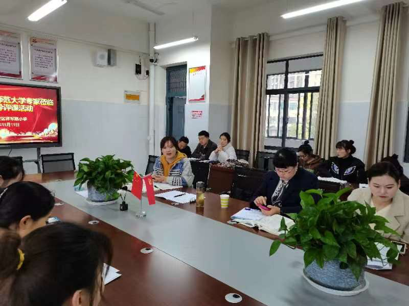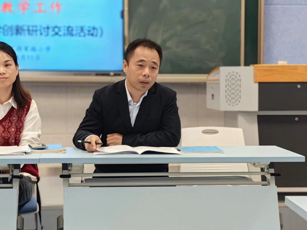 阜阳市苗桥小学牛振华老师从两个学校教师数量、学校规模的对比,两位示范课教师的课堂表现,对年轻教师的建议三大方面展开交流。牛老师肯定了两位校级公开课教师对教材的精准把握,对教学环节明晰于心,关注学生的回答并给出及时回应等等,同时就“培养学生说完整的话”和“注意书中小动物们的微表情以更好地发现信息”等方面,小处着眼,引导教师关注数学核心素养。最后,牛老师提出,年轻教师要善于钻研教材,要勤反思,写案例型论文,在教师专业发展道路上越走越远。