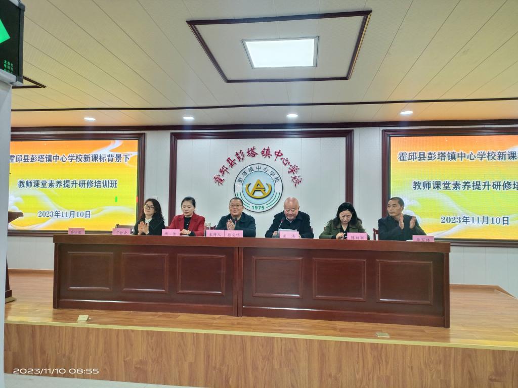 11月10日上午8点40,阜阳师范大学举办的2023年安徽省“国培计划”重点区域一对一项目“新课标背景下教师课堂教学素养提升研修”培训班在霍邱县彭塔中心校多功能报告厅举行开班典礼。