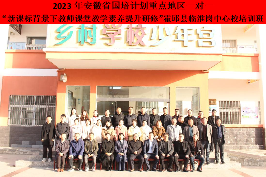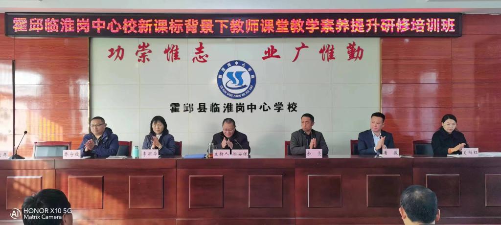 11月17日上午8:00,阜阳师范大学承办的2023年“国培计划”重点区域一对一帮扶项目“新课标背景下教师课堂教学素养提升研修”培训班在霍邱县临淮岗中心校多功能报告厅举行开班典礼。霍邱县临淮岗中心校校长屠俊、副校长闫自国和刘啸,四位培训专家李丽华、余亮、肖丽红、乔守俊老师以及50名参训学员参加开班典礼,典礼由项目带队专家徐安银主持。
