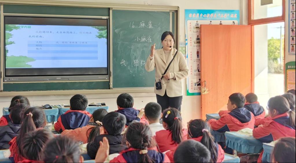 学员许芮在四(3)班执教《麻雀》。她通过单元整体联系导入新课,心中有目标学习有方向,让学生上课之初在心里就清楚学习目标。她还提供学习支架,通过文本的解析,师生共同总结写作方法。在方法教学的同时,她不忘人文主题的学习,将母爱融合在配乐朗读中,学生习方法、悟主题,一步步落实素养能力。