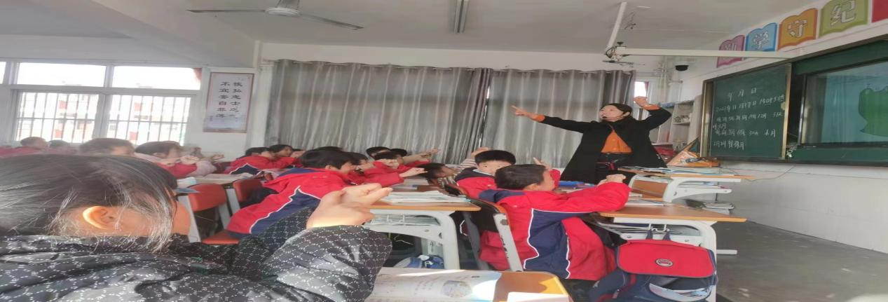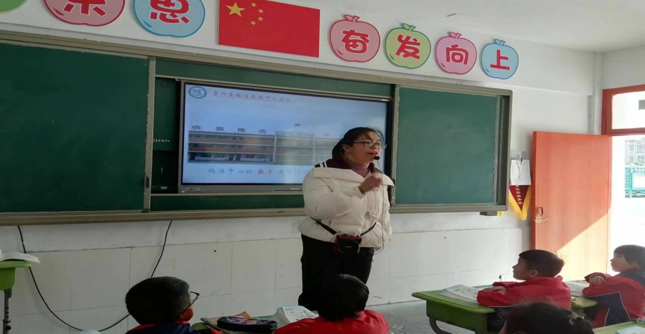 ▲ 肖丽红在二(2)班讲授《教室有多长》