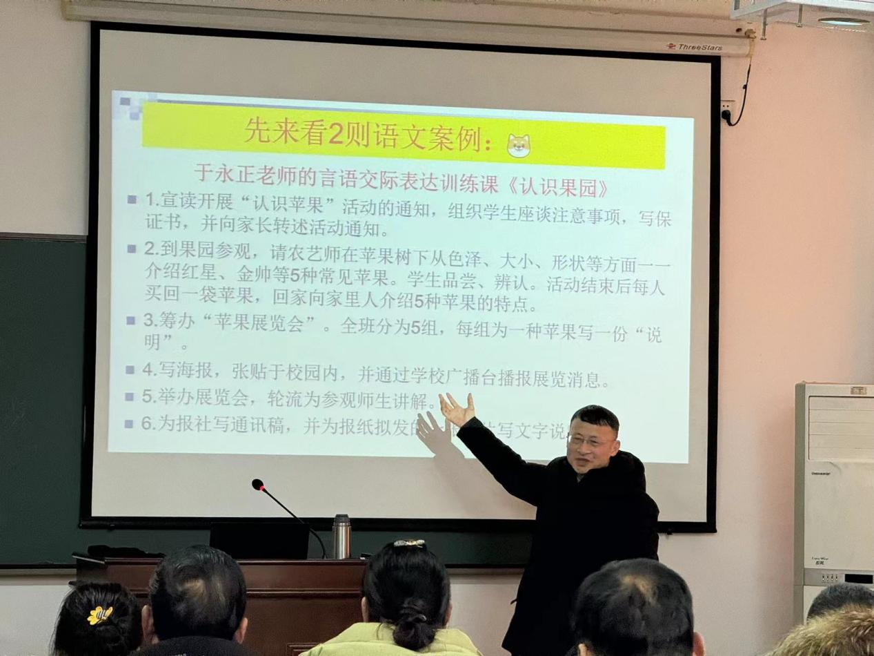 在讲座中,金业文教授充分肯定了小学组学员教师们的辛勤付出和丰硕成果,并激励他们持续深化对新课标的研读,积极创新教学方式,以培养学生的核心素养为导向,构建多元化的评价体系,实现学科育人目标。金教授特别强调学习任务驱动课堂教学的重要性,坚信学习任务主导的语文学习,可以实现从多记多练到少教多学的实践变革,学生在任务解决中经历知识的建构过程,活化了知识;学习任务创造的语文生活,实现了从“记中学”到“做中学”的方式变革,学生在用语文做事的过程中会达成知行合一,从而成为一个完整的人。