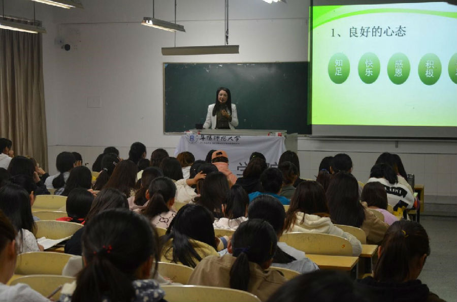 报告会分主题讲座和互动问答两个环节。在主题讲座环节,程艮凤校长从幸福的内驱力、终身学习、立足课堂和潜心研究四个方面,与同学们分享了自己作为一名小学数学教师专业成长的心路历程。讲座用充满诗意的语言、生动真实的案例和美丽动人的传说,讲述了“我与我的学校”、“我与我的老师”、“我与我的同事”、“我与我的学生”、“我与我的目标”、“我与我的奋斗”等一个个感人肺腑的故事,极好地诠释了一名小学特级教师的良好专业品性与深厚教育情怀,对于初入专业学习的大一新生来说可谓受益匪浅。在互动问答环节,同学们踊跃发言,就如何搞好小学课堂教学、怎样处理好小学课内外师生关系等问题与程校长进行了积极互动。