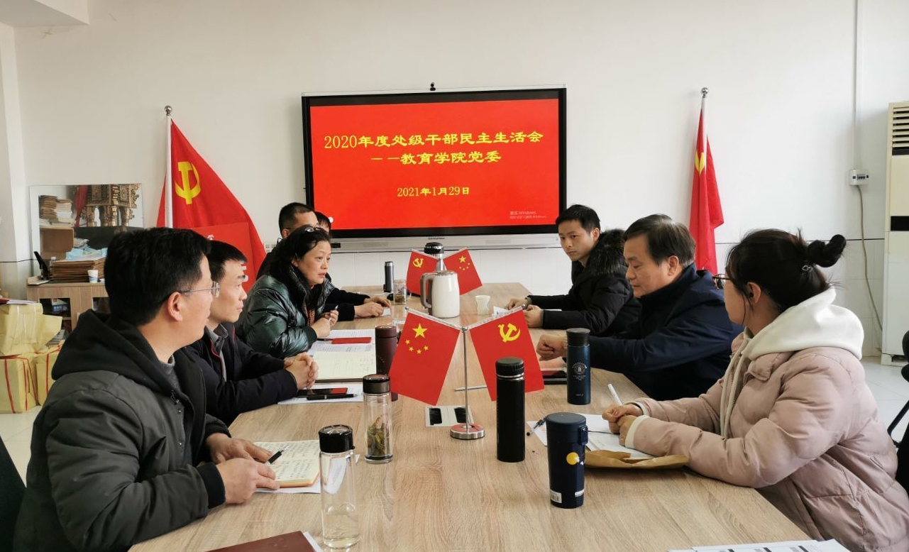 2021年1月29日下午,教育学院党委在景行楼802会议室召开处级党员领导干部2020年度民主生活会,学院领导班子、党委委员、工会主席参加会议,督导组组长、人事处处长卢少求到会指导。会议由学院党委书记魏文霞主持,