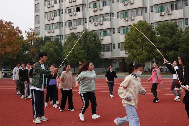 本次运动会共计七个项目, “跳大绳”、“一站到底”、“背对背夹球跑”、 “两人三足”、 丢沙包、滚铁环和拔河比赛,项目设计新颖,趣味性强。秋日暖阳下赛场上师生共同拼搏,奋勇争先,竞技中欢声笑语不断,合作中师生携手并进,更快、更团结、更健康的体育精神在活动中得到了完美的展现。