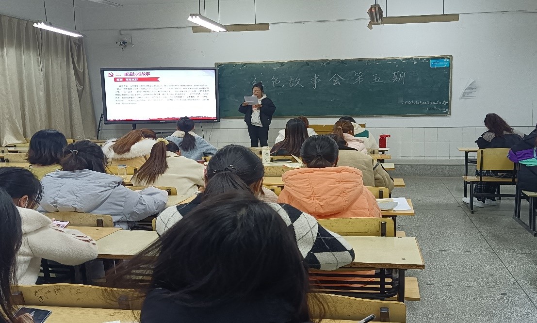 在红色故事会上,第五组党员以“重温长征故事”为题讲述了红军长征概况、长征中的动人故事、长征的历史意义和长征精神。李闪闪深情地叙述了红军长征中《草地夜行》的故事,红军战士互帮互助、舍身为人的英勇事迹令人动容,其中那句“要记住革命!”更是表现出了红军战士心中共同的信仰。