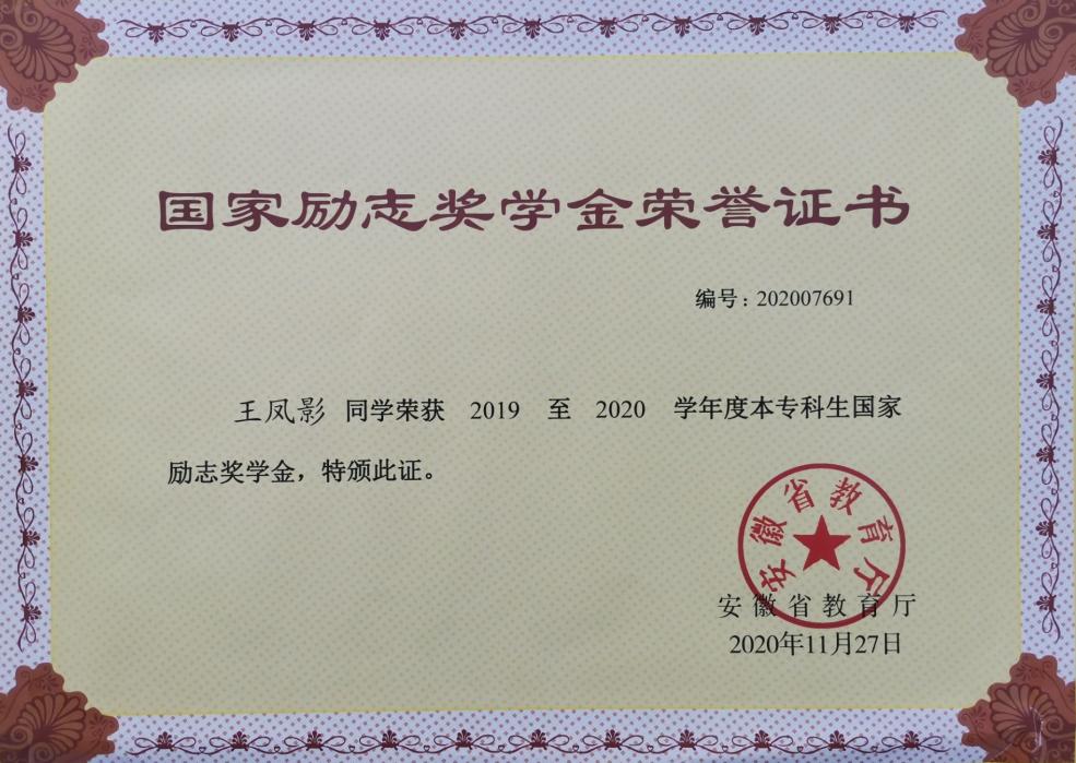 答:这是我作为一名学生的最高荣誉。确实,在得知自己获得这个奖项时,我是十分激动与喜悦的,当一切尘埃落定后,又是感激的。我真心感谢我的老师们、以及帮助过我的学姐学长和同学们,他们给了我很多的帮助,没有他们就没有现在的我。我也想感谢自己,并没有虚度四年青春,做到了对自己负责,对未来尽责。未来可期,期待更好的自己!我尤其要感谢学院党组织和辅导员,正是因为他们指引着我树立了坚定的共产主义信念,始终以一个党员的身份要求自己,才让我的工作、学习和个人修养充满了无穷的动力,才让我有了藐视和克服一切困难的勇气,也才能够有幸获得国家奖学金这项荣誉。