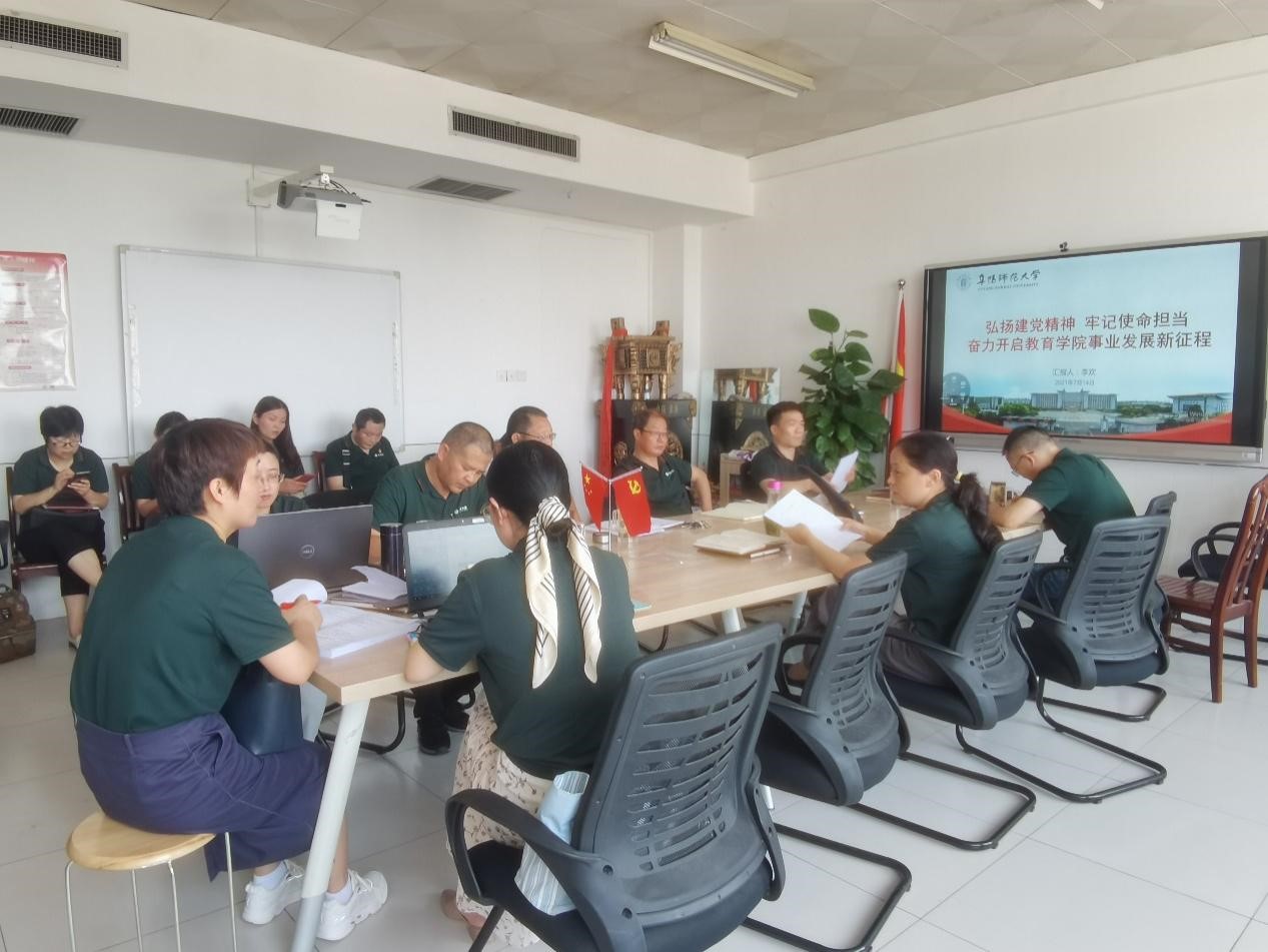 7月14日下午,教育学院在景行楼802会议室召开全体教师会议,院长、副书记李欢作题为《弘扬建党精神,牢记使命担当——奋力开启教育学院事业发展新征程》专题党课。会议由党委书记魏文霞主持。