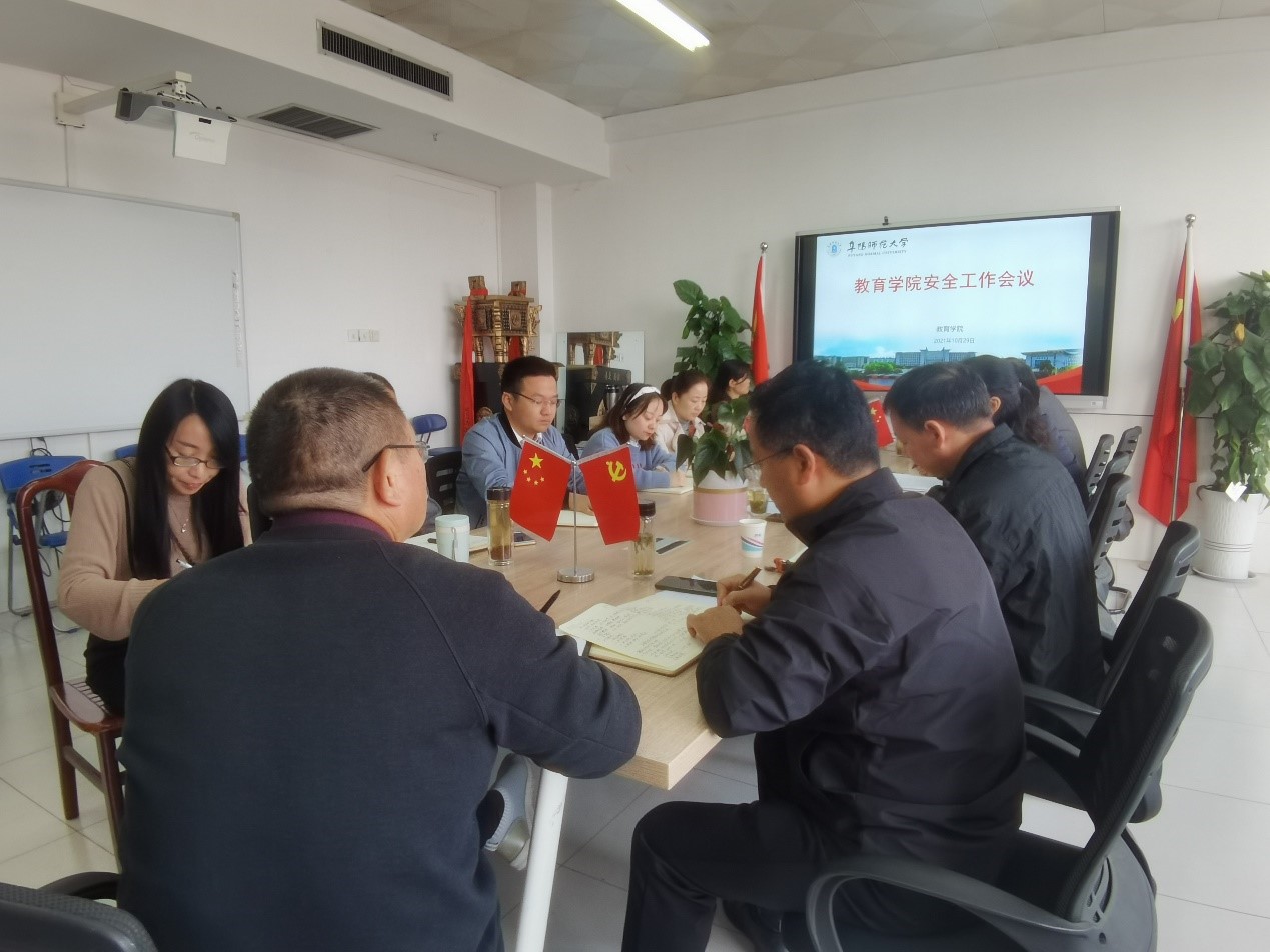 为进一步强化校园安全意识,做好常态化疫情防控及秋冬季节重点安全工作,教育学院于10月29日在景行楼802会议室召开安全工作专题会议。会议由教育学院党委书记魏文霞主持,党委委员、辅导员、教研室主任参会。