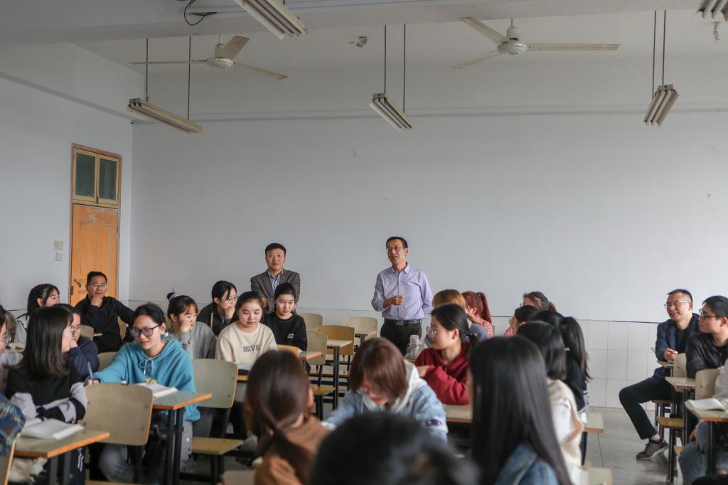季爱新在景行楼513教室听了梁艳老师为学前教育专业2020级1班讲授的《学前教育学》课程。课间休息时,他与师生进行了深入交流,了解师生对学校和学院工作的意见和建议。他对梁老师认真的教学态度、饱满的工作热情和良好的教学水平给予充分肯定,并对改进课堂教学、提高教学质量提出了希望和要求。他强调,高校的最重要任务是人才培养,我校一直凸显教学工作的中心地位,有着良好的教学研究传统,要通过实践活动的开展,进一步查找问题,努力提高教学质量。