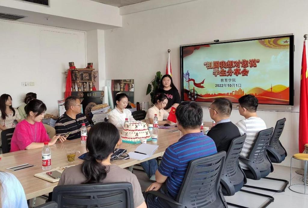 为进一步贯彻落实疫情防控工作部署要求,做好国庆期间的人文关怀,深化爱国热情,展现学院温暖,10月1日,我院举办“我和祖国共庆生”主题活动。活动在西湖校区、三里桥校区分别召开。张庆旭副校长到会聆听了学生们的分享。教育学院党委书记魏文霞、副书记葛西强、副院长王胜、在校全体专兼职辅导员以及三十余位国庆期间过生日的同学参加本次活动。