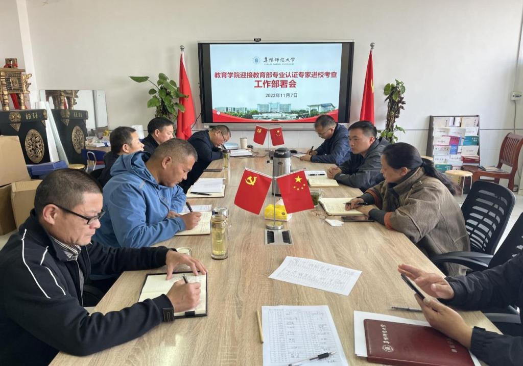 为迎接教育部师范类专业认证专家进校考查,11月7日下午,我院在景行楼802会议室召开小学教育专业认证工作部署会。我院党委书记魏文霞、院长李欢和全体教师参加会议,会议由副院长王胜主持。