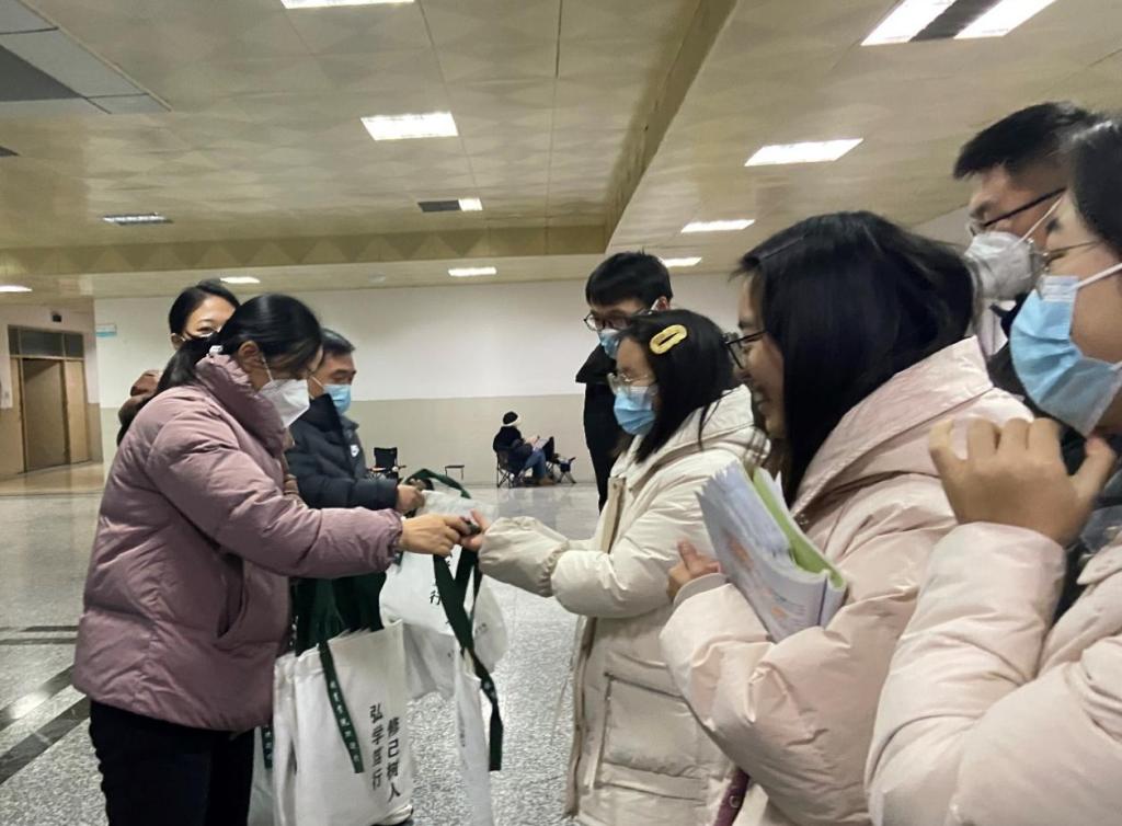 为进一步推进“七进”工作,帮助考研学生坚定考研目标、舒缓备考压力,12月12日,我院开展考研助力加油包发放活动,学院党委书记魏文霞,院长李欢,毕业班辅导员李佳丽、刘明欢以及团委负责人张思奇等,在景行楼一楼大厅、图书馆等地,为考研学子送上来自学院的关心温暖和祝福。