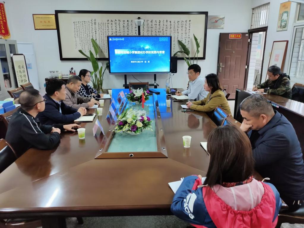 在阜阳市北城小学,校长赵彪带领李欢一行参观北城小学爱校基地,介绍北城小学的建校历史、办学历程和文化传统。在座谈会上,赵彪简要介绍北城小学集团化办学的实践、办学理念和未来发展目标,并提出目前北城小学的迫切需求。李欢介绍教育学院办学特色、培养层次、专业设置、师资力量以及服务地方的情况。双方初步在共建教育实践基地、进一步凝练北城小学校园文化等方面达成合作意向。