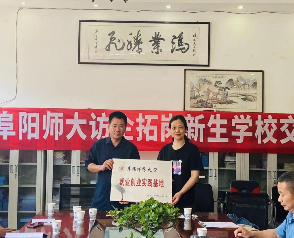 魏文霞代表学校分别与阜阳市育才幼儿园恒大分园、阜阳市文峰幼儿园、阜阳市王堰镇新生学校校签订合作协议,并举行就业创业实践基地挂牌仪式。