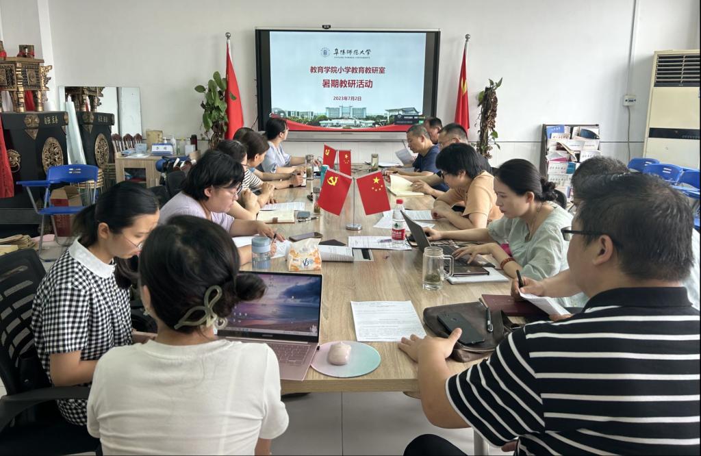 7月2-4日,小学教育专业在景行楼802会议室开展了课程思政专题教研活动,院长李欢、校法制办副主任范小虎、副院长王胜和小学教育专业全体教师参加研讨会。