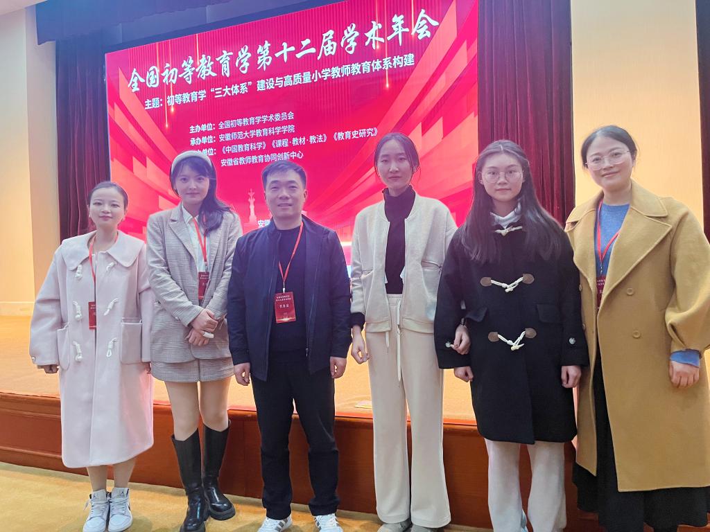 2023年11月17日至19日,全国初等教育学第十二届学术年会在安徽芜湖举行,学院院长李欢,小学教育系主任高艳军,小学教师教研室教师范煜、李梦如受邀参会。本次年会主题是初等教育学“三大体系”建设与高质量小学教师教育体系构建,大会由全国初等教育学学术委员会主办,安徽师范大学教育科学学院承办。