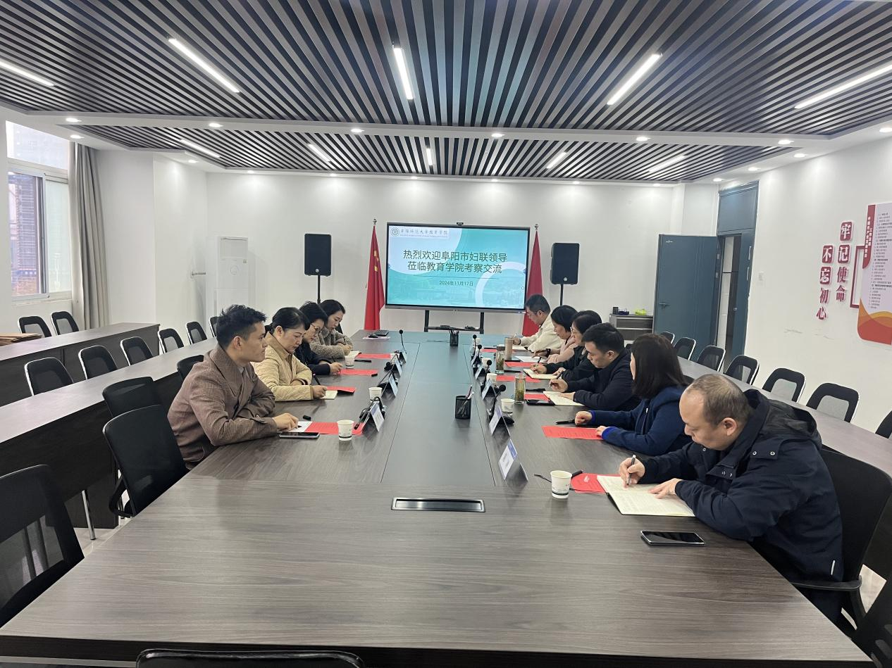 11月17日,阜阳市妇联党组书记、主席梁红群,二级调研员高颍利等一行莅临我院考察调研。院党委书记李静、院长李欢、原阜阳师范大学教育集团(附属中学)校长高家芳、农民工研究中心副主任王萍和我院部分教师参加座谈。