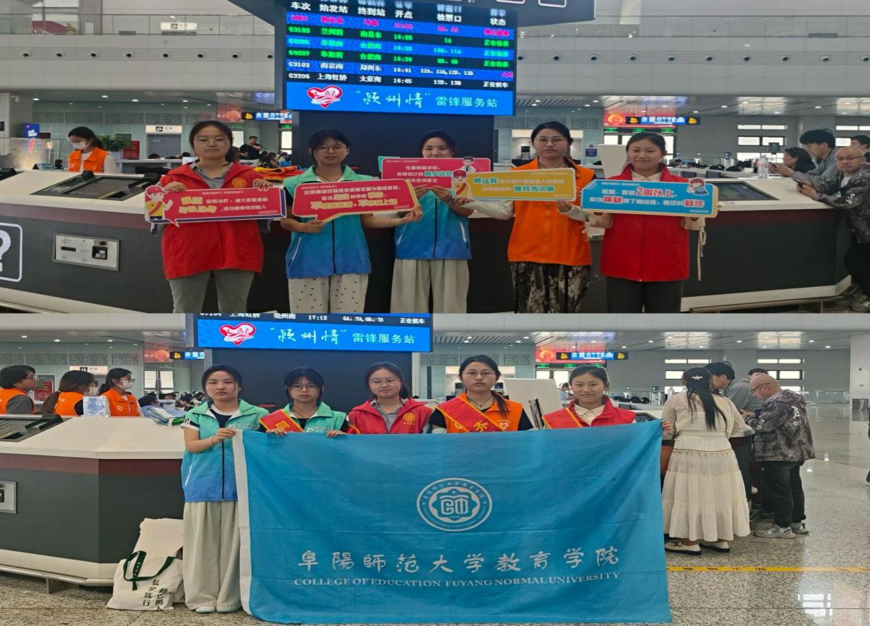 五一期间,学院组织志愿者前往阜阳火车站和高铁站开展“青春志愿行,奉献新时代”主题服务活动。志愿者们协助维持秩序、引导旅客、解答疑问,用热情和汗水展现了青年学子的责任与担当。此次活动不仅弘扬了“奉献、友爱、互助、进步”的志愿精神,也让同学们在劳动中体会到服务社会的价值与意义。