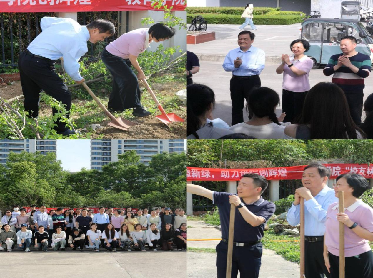 4月23日下午16:00,学院在三里桥校区教育学院主楼前广场举办“校友林”植树活动。本次活动以“劳动美化校园,青春践行担当”为主题,吸引了众多校友和师生共同参与。大家挥锹铲土、扶苗浇水,在劳动中感受奉献的快乐,用实际行动诠释了五四精神中的奋斗品格和劳动精神。