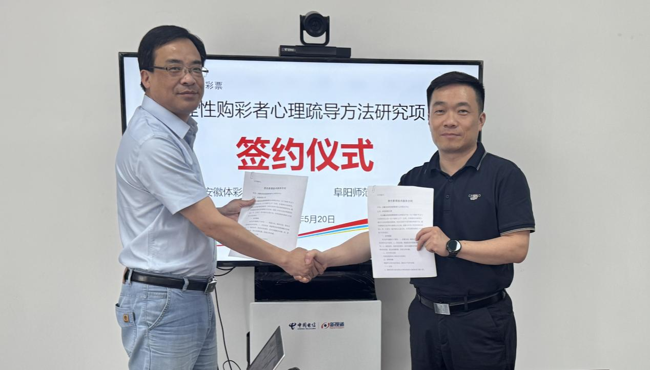 此次我院与体彩阜阳分中心的合作签约,是一次理论与实践的深度融合,也是跨领域协同解决社会问题的积极探索。双方将以此次签约为契机,整合各自资源与优势,共同开展非理性购彩相关研究与干预项目,为营造健康、理性的购彩环境,推动体育彩票行业高质量发展注入新动力。