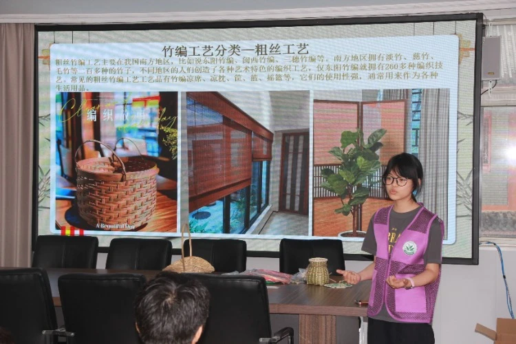 实践队开设竹编公益讲座,《竹编的前世今生》带大家追溯竹编从古代生活器具到现代非遗文化的演变历程,讲述竹编在肥东县当地的历史故事;《细丝工艺解密》详细拆解选竹、剖丝、晾晒等步骤,用生动案例讲解细丝工艺的精妙之处;《竹编与生活》展现竹编在日常收纳、装饰等方面的实用价值,让群众深入了解竹编的文化内涵与实用价值。