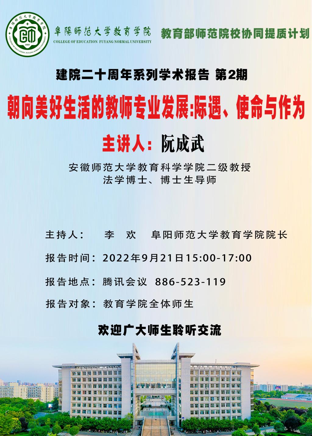 建院二十周年系列学术报告—阮成武:朝向美好生活的教师专业发展:际遇、使命与作为