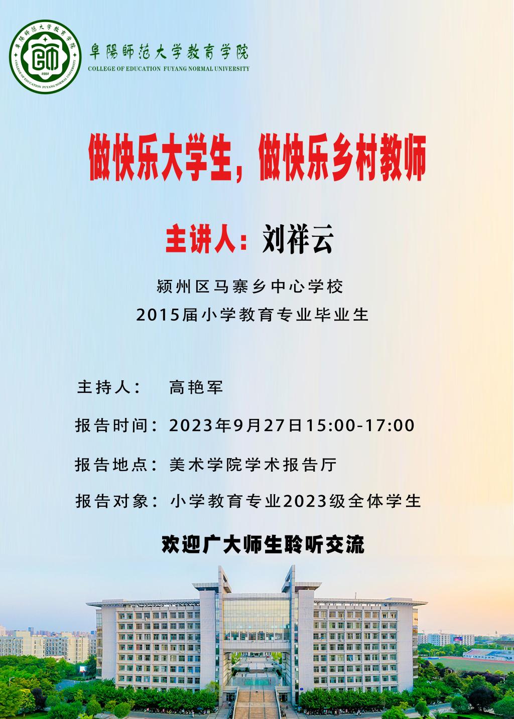 [名师名校长论坛]—刘祥云 做快乐大学生,做快乐乡村教师