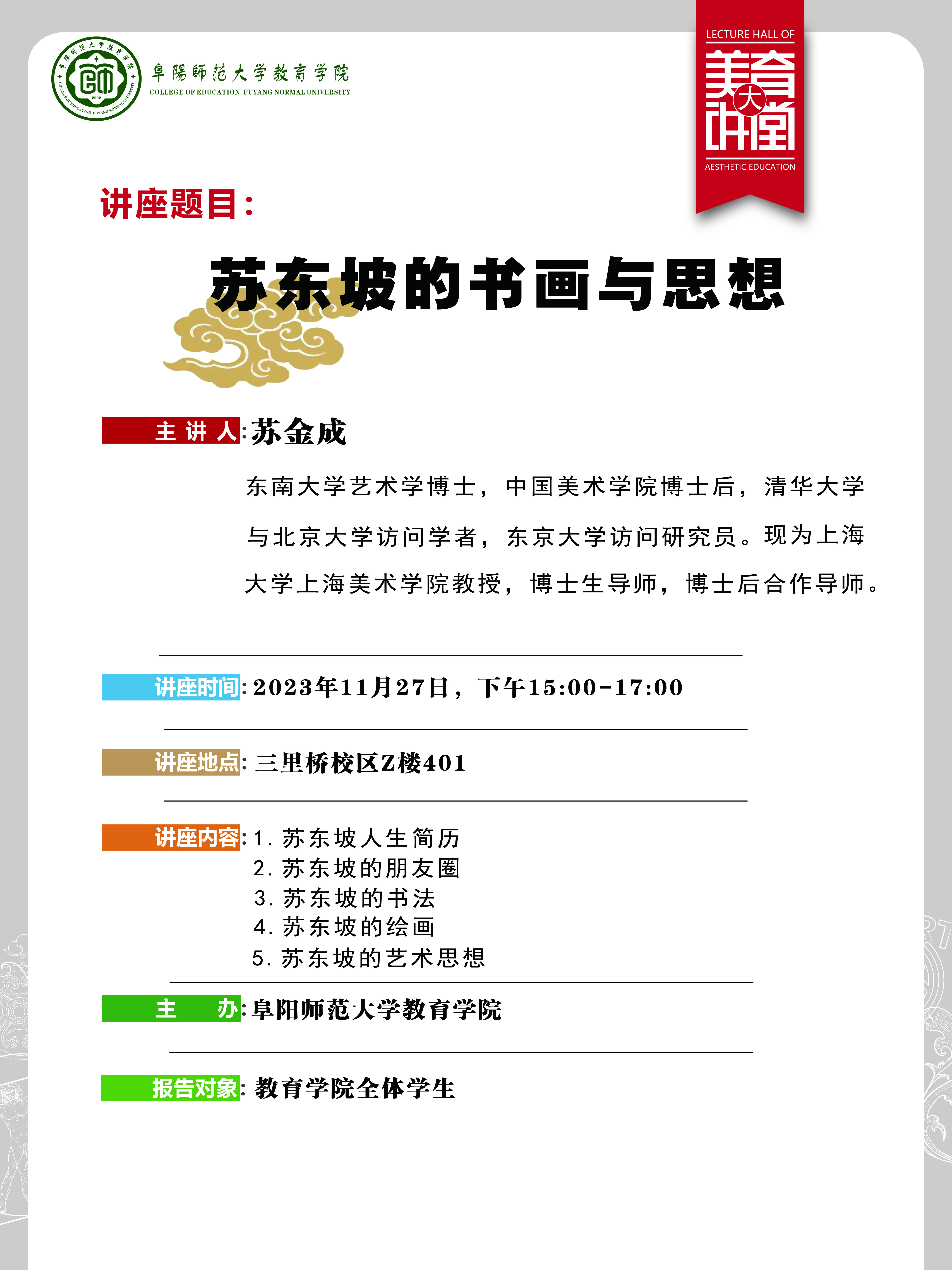教育学院美育大讲堂系列2-苏金成 苏东坡的书画与思想