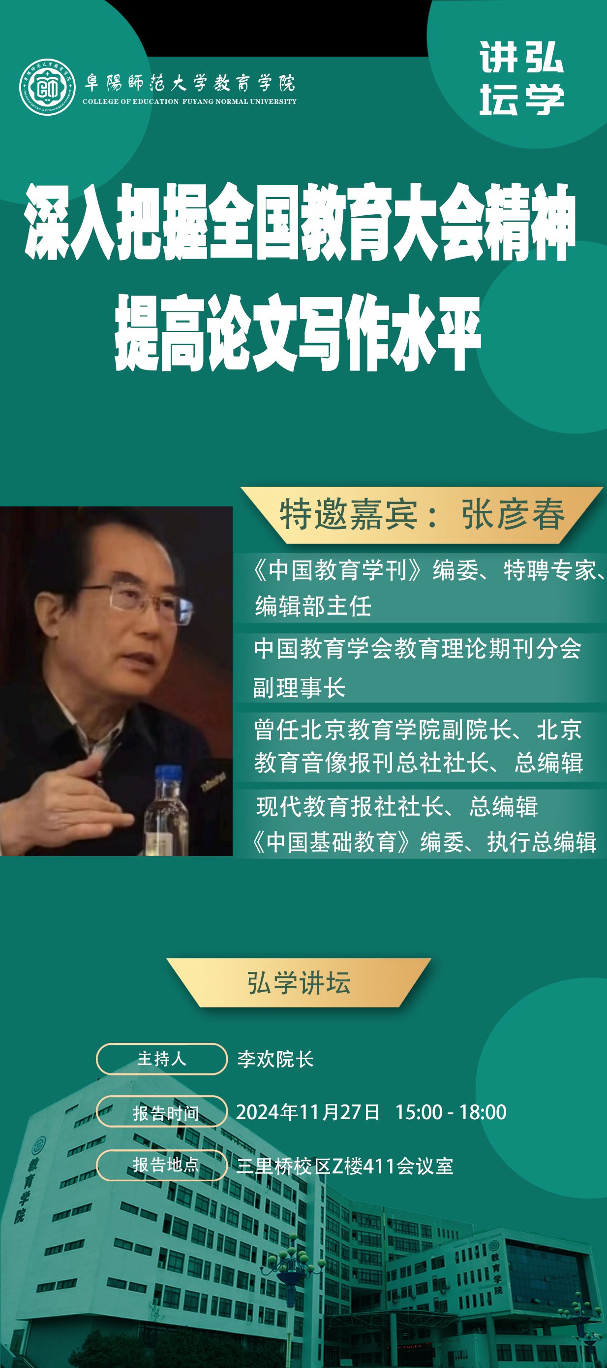 【弘学讲坛】-张彦春 深入把握全国教育大会精神,提高论文写作水平
