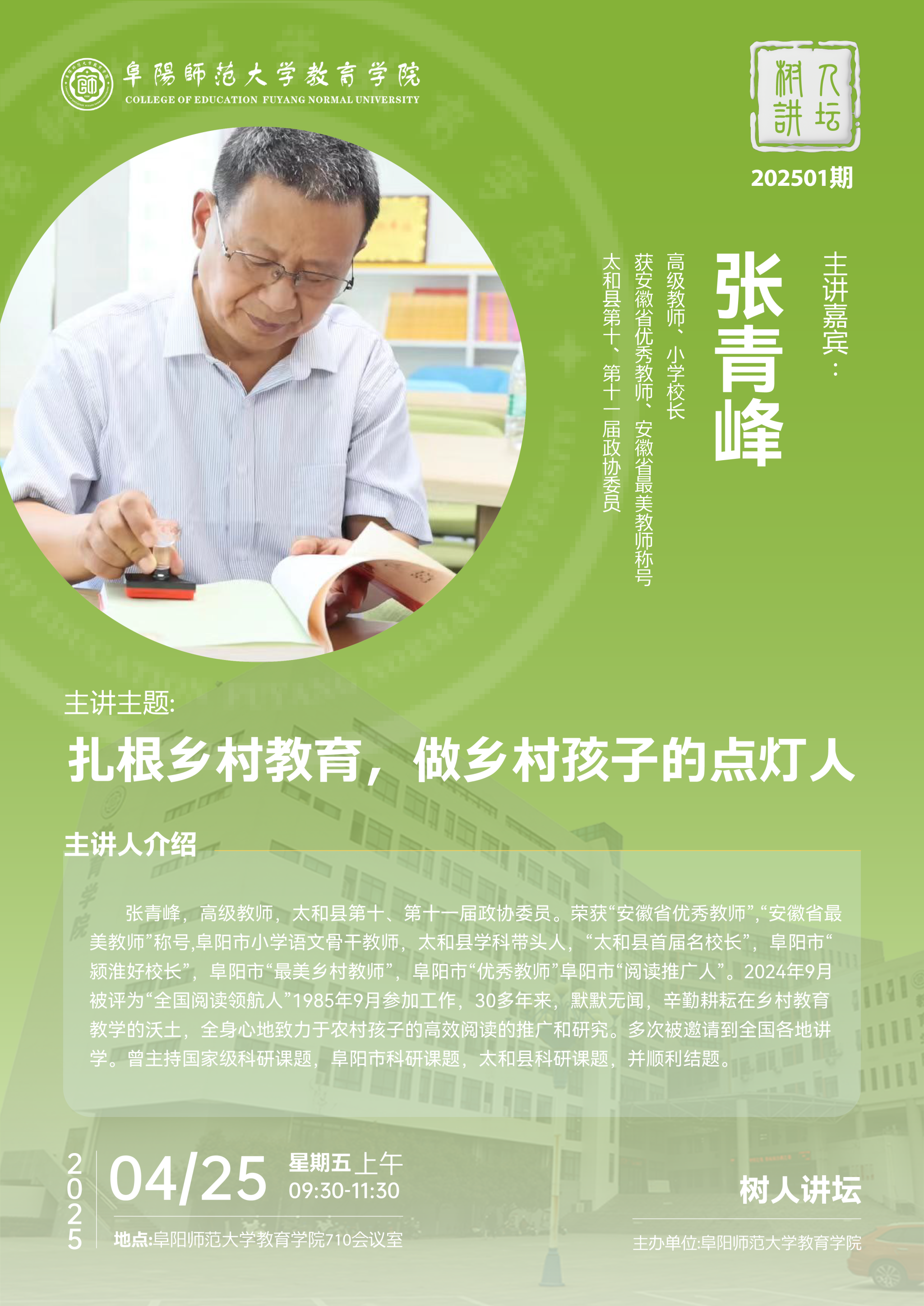 【树人讲坛 202501期】-张青峰 扎根乡村教育,做乡村孩子的点灯人