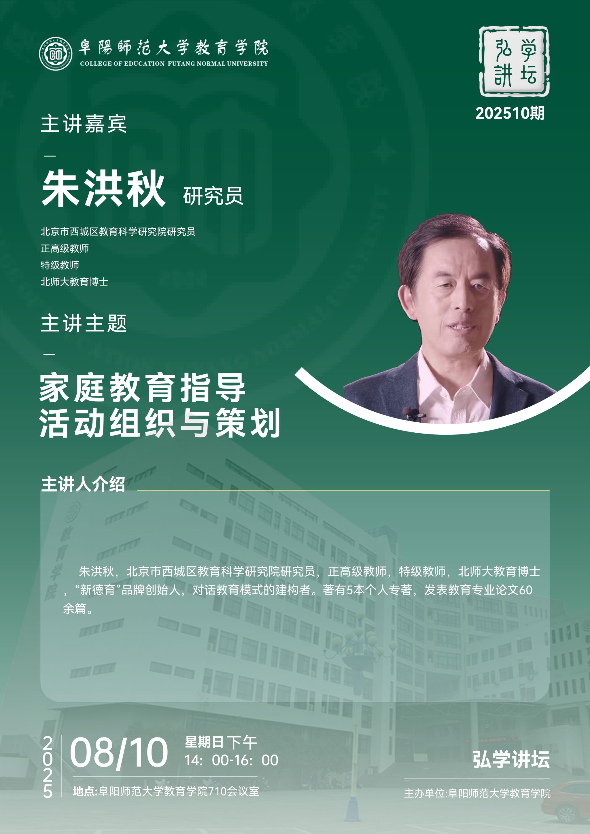 【弘学讲坛 202510期】-朱洪秋 家庭教育指导活动组织与策划