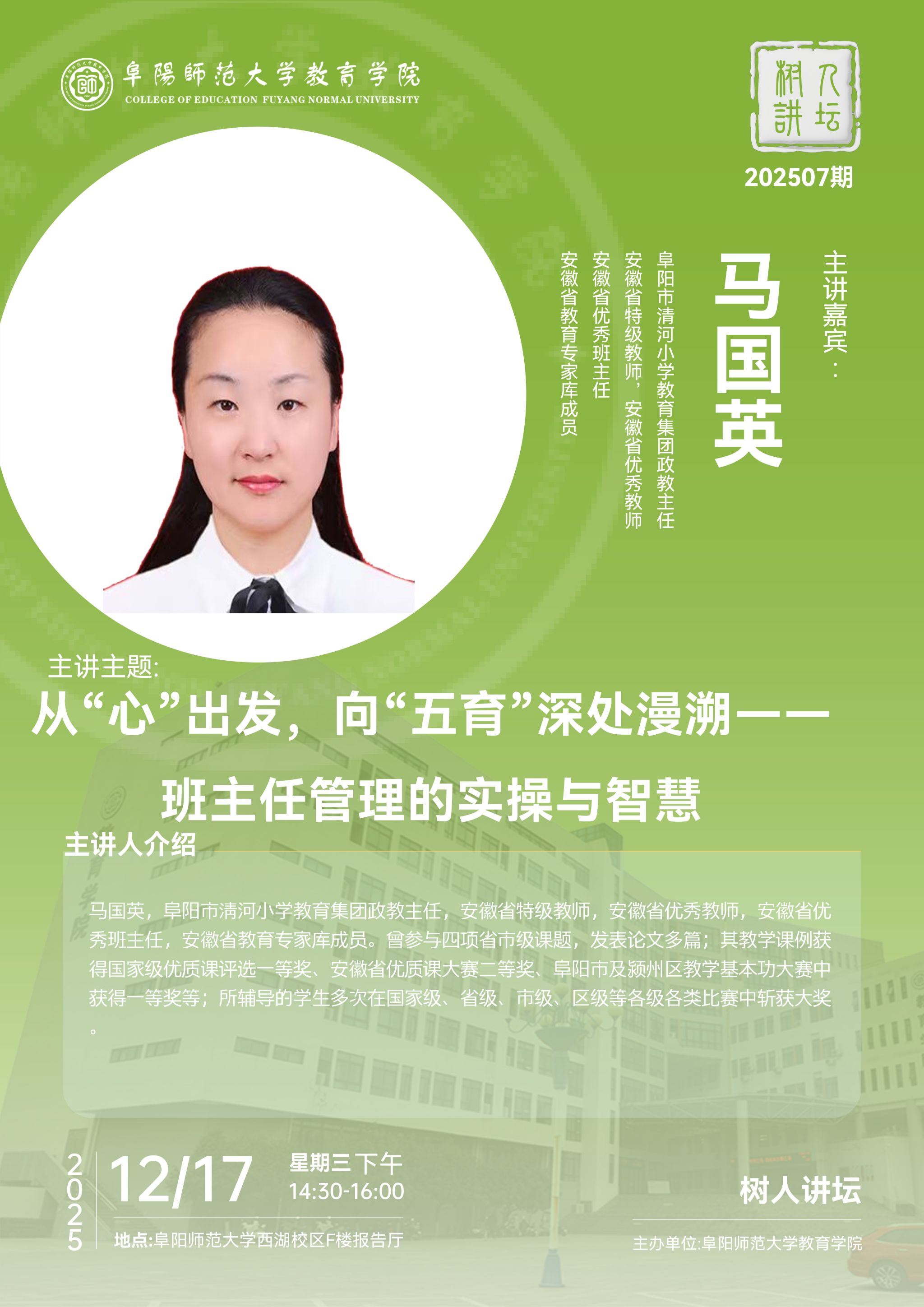 【树人讲坛 202507期】-马国英 从“心”出发,向“五育”深处漫溯——班主任管理的实操与智慧