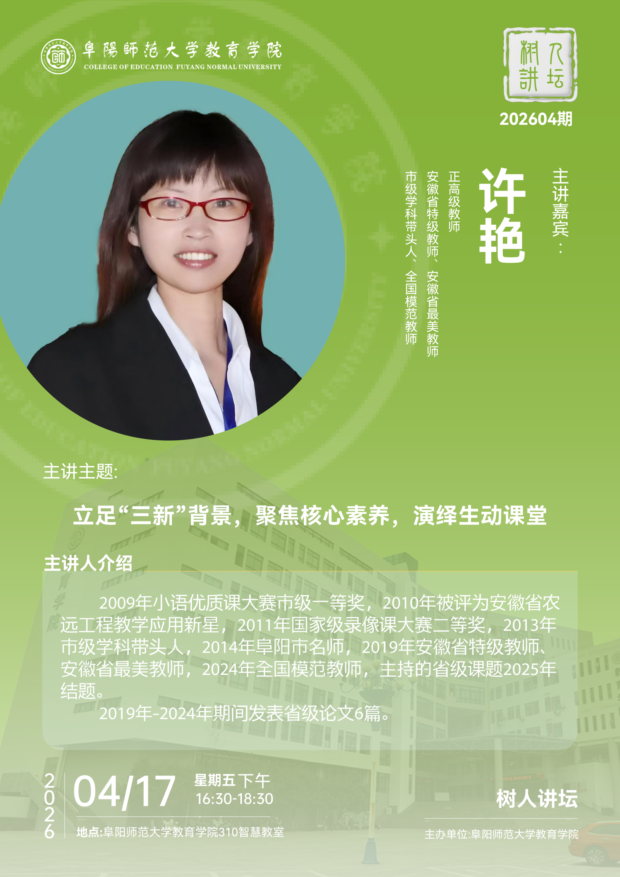 【树人讲坛 202604期】-许艳 立足“三新”背景,聚焦核心素养,演绎生动课堂