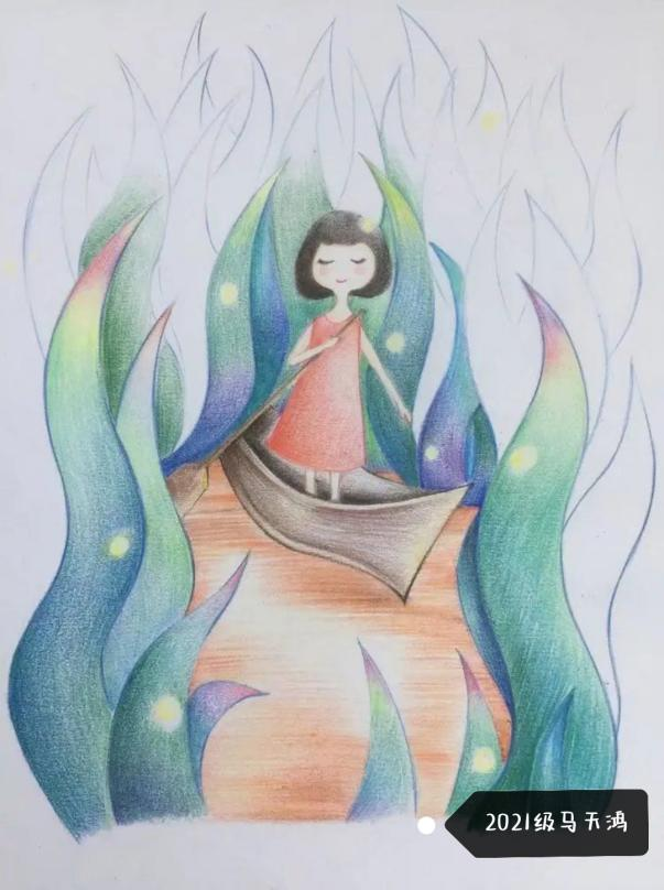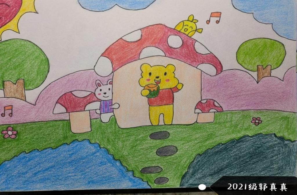 结合小学教育阶段学生特点,通过儿童画的训练和展示,帮助师范生掌握儿童画的艺术特征。学生在一幅幅彩铅儿童画的基础上,用不同形式抒发对青春的理解、对生活的热爱。